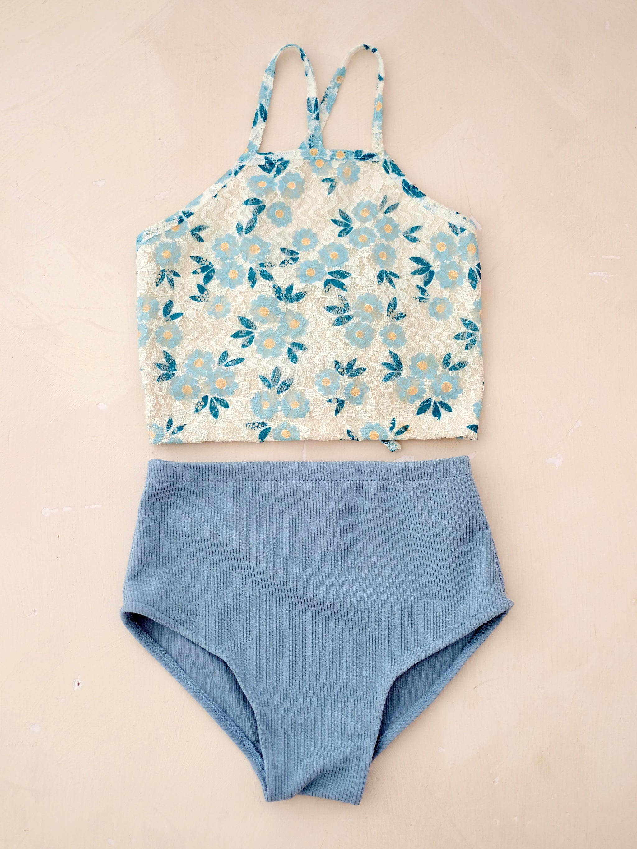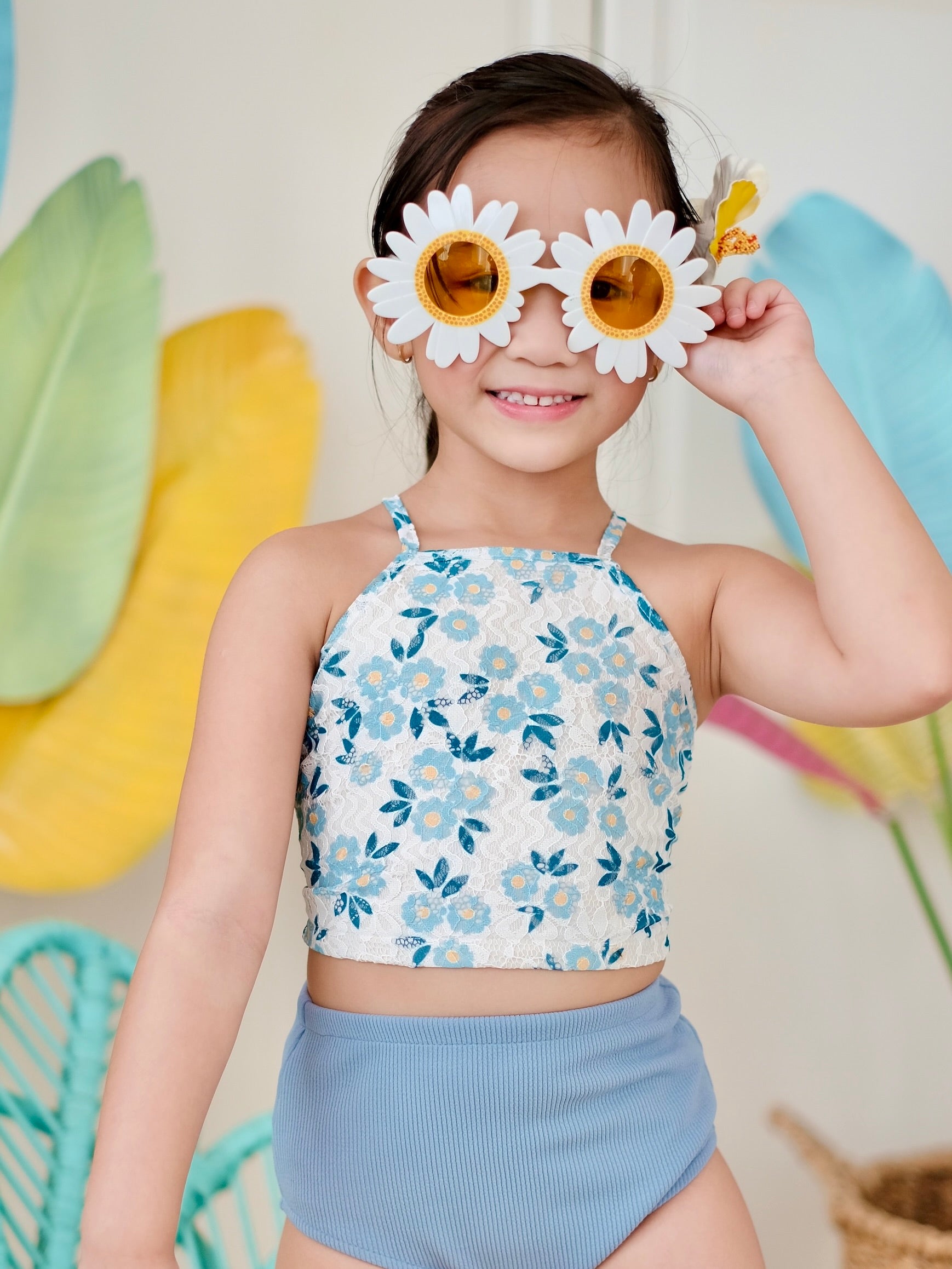 Make a splash with the Tori Set! This adorable two-piece features a delicate lace top paired with breathable swim bottoms in a gorgeous blue shade. Perfect for little water lovers who want style and comfort combined. Fun, functional, and fabulous!