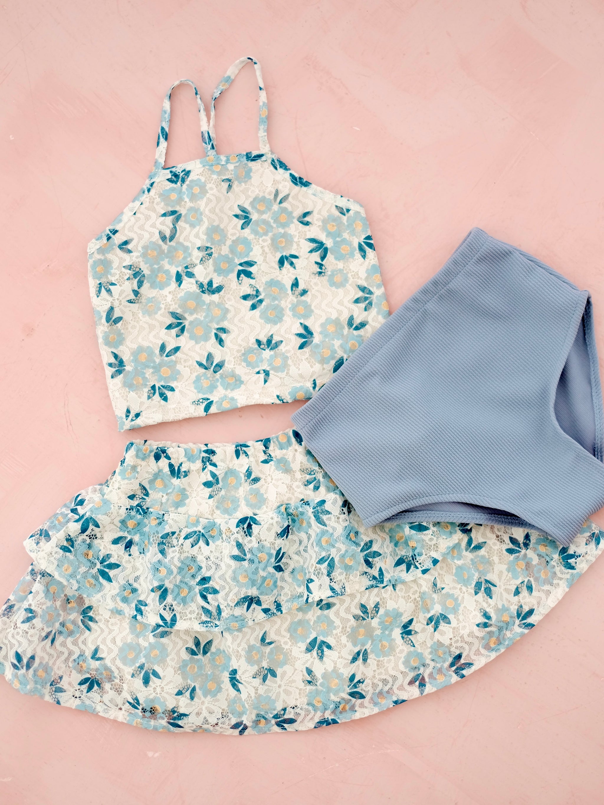 Estimated ship-by-date for: February 20, 2026 | Dive into summer style with the Tori 3-piece Bundle! This adorable two-piece features a delicate lace top and coverup skirt paired with breathable swim bottoms in a gorgeous blue shade. Perfect for little water lovers who want style and comfort combined. Fun, functional, and fabulous!