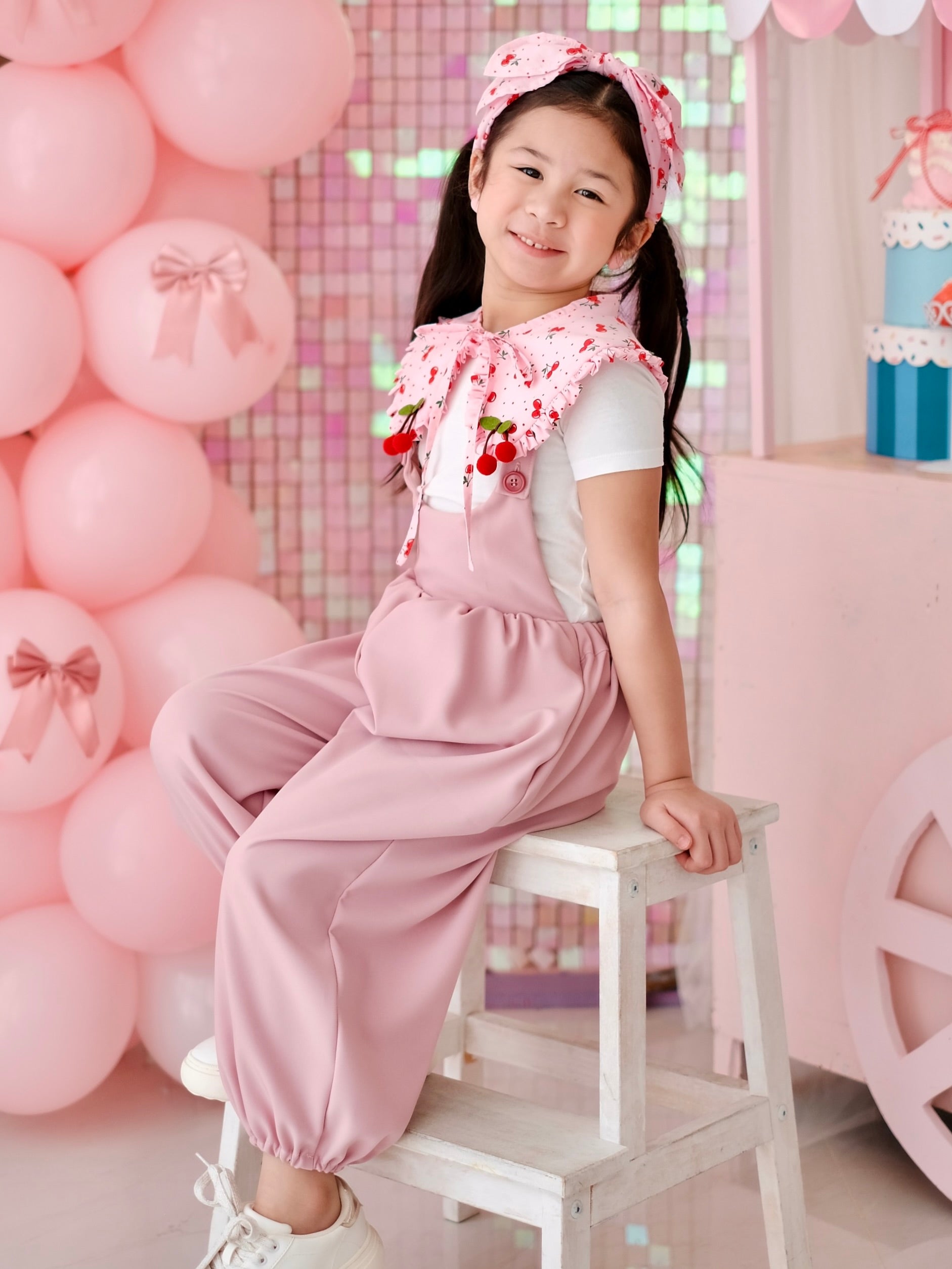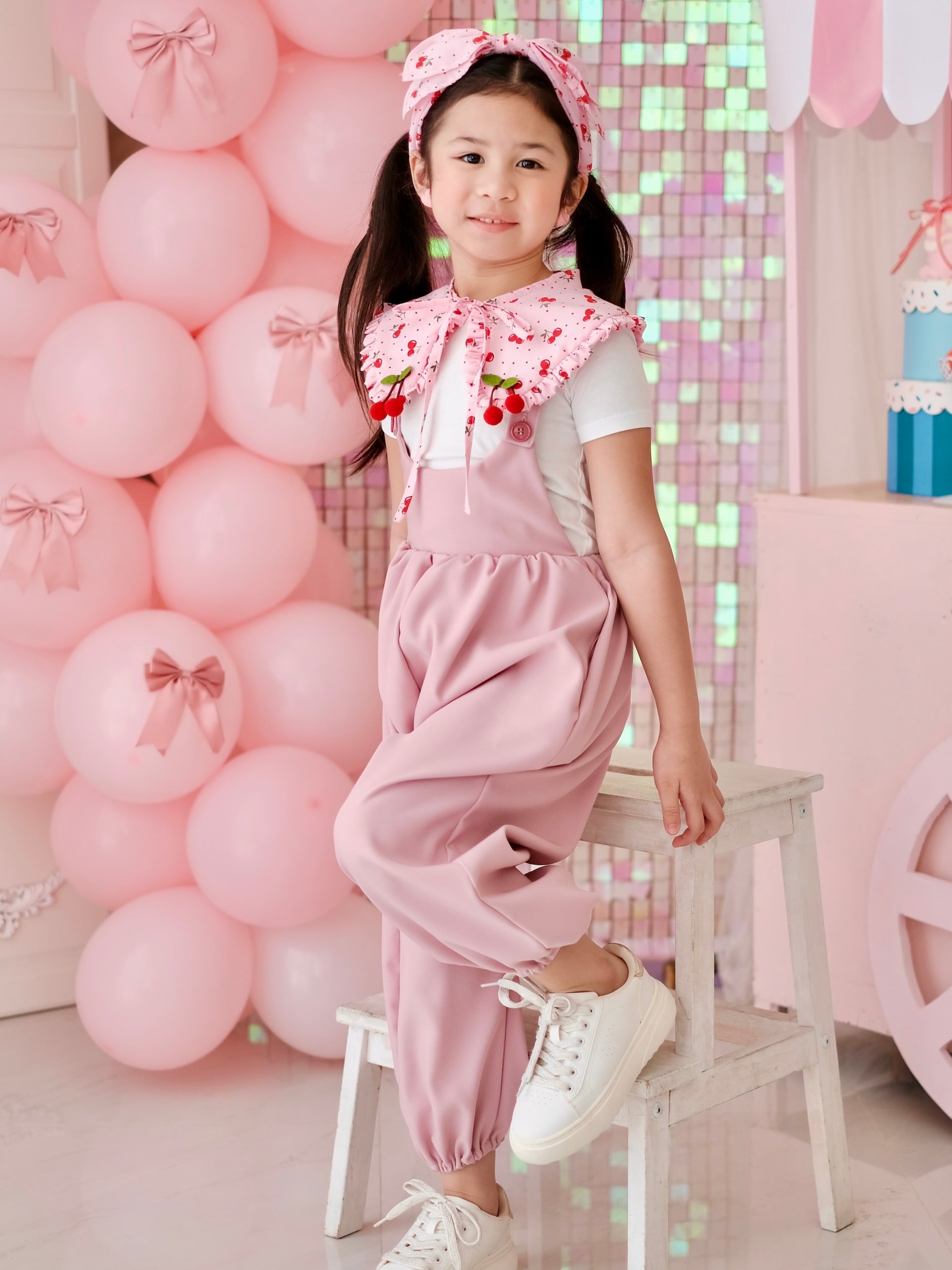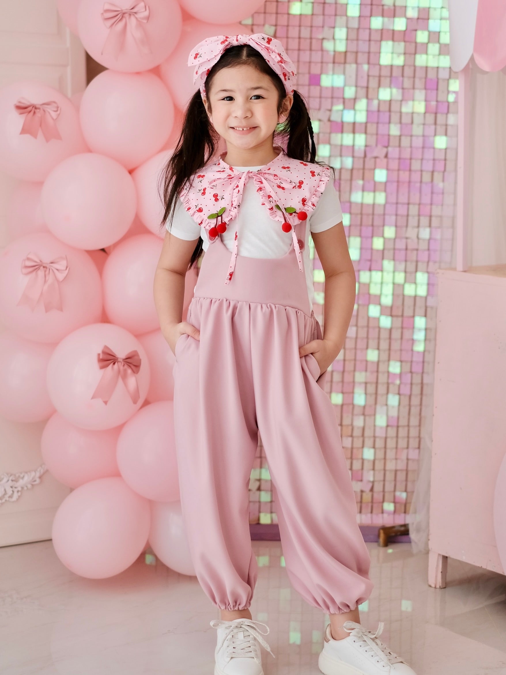 Meet your new favorite playdate essential! These charming Georgie Overalls in pink feature practical button closures at the front and a fun criss-cross design at the back for that adorable, effortless look. Available on its own or a set for pre-order that includes the Salome Collar and Double Bow Headband.