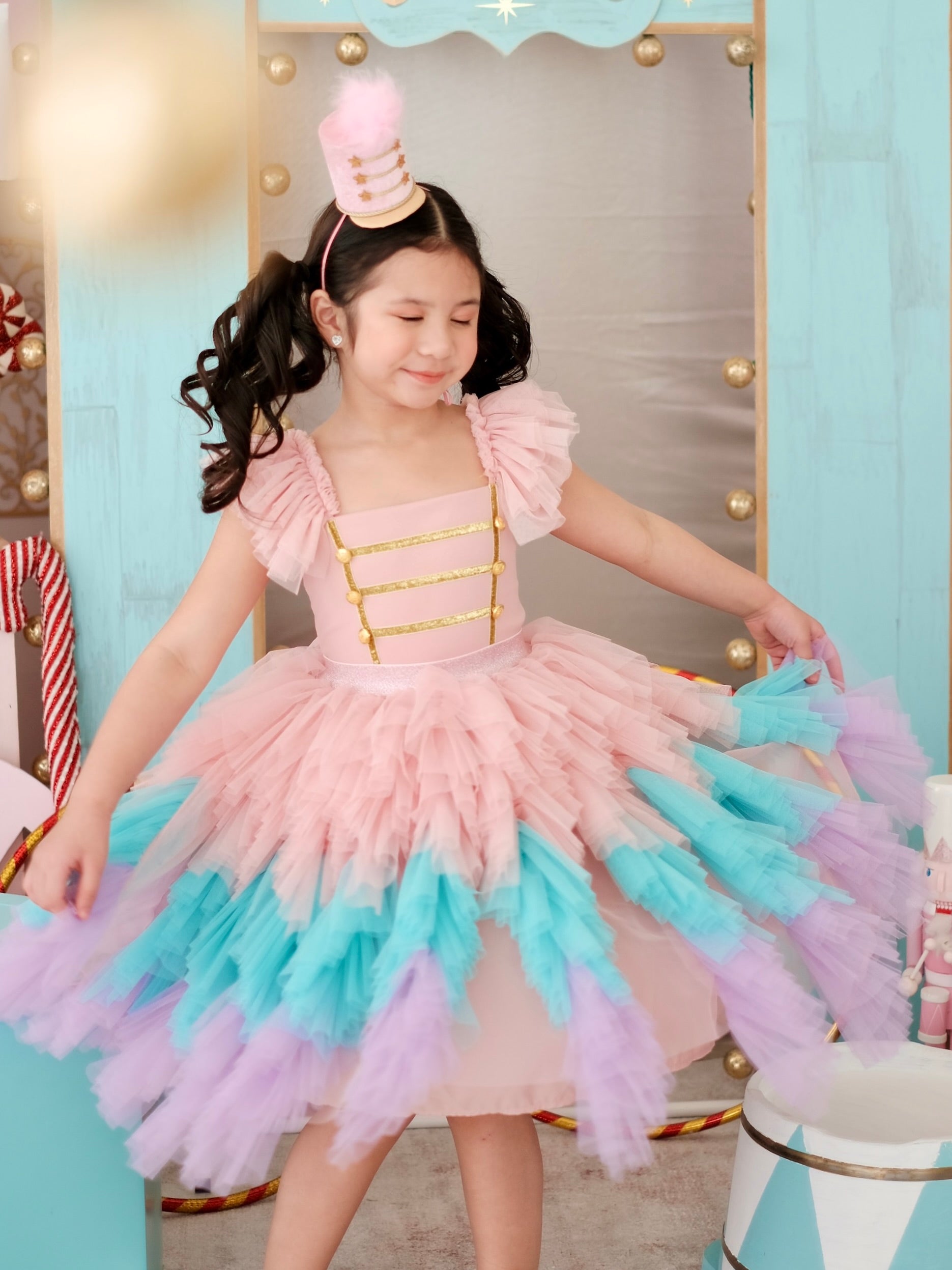 Estimated ship-by-date: October 15, 2025 | The Laurette Nutcracker Top in burgundy is a charming match for our Laurette Mermaid set. With gold trim, shiny buttons, and playful ruffles on the shoulders, it’s made for twirling and smiles. The smocked back ensures a cozy fit, while the new higher back keep comfort and coverage just right. Perfect for your little dancer’s magical moments!
