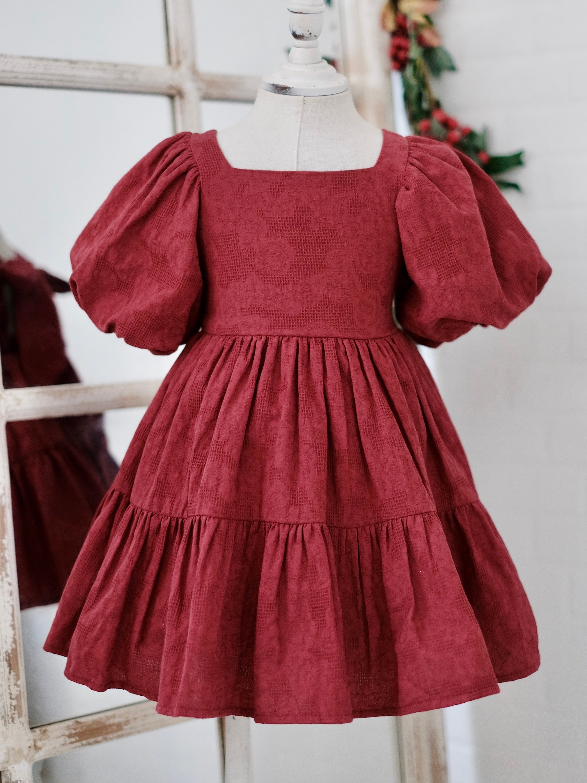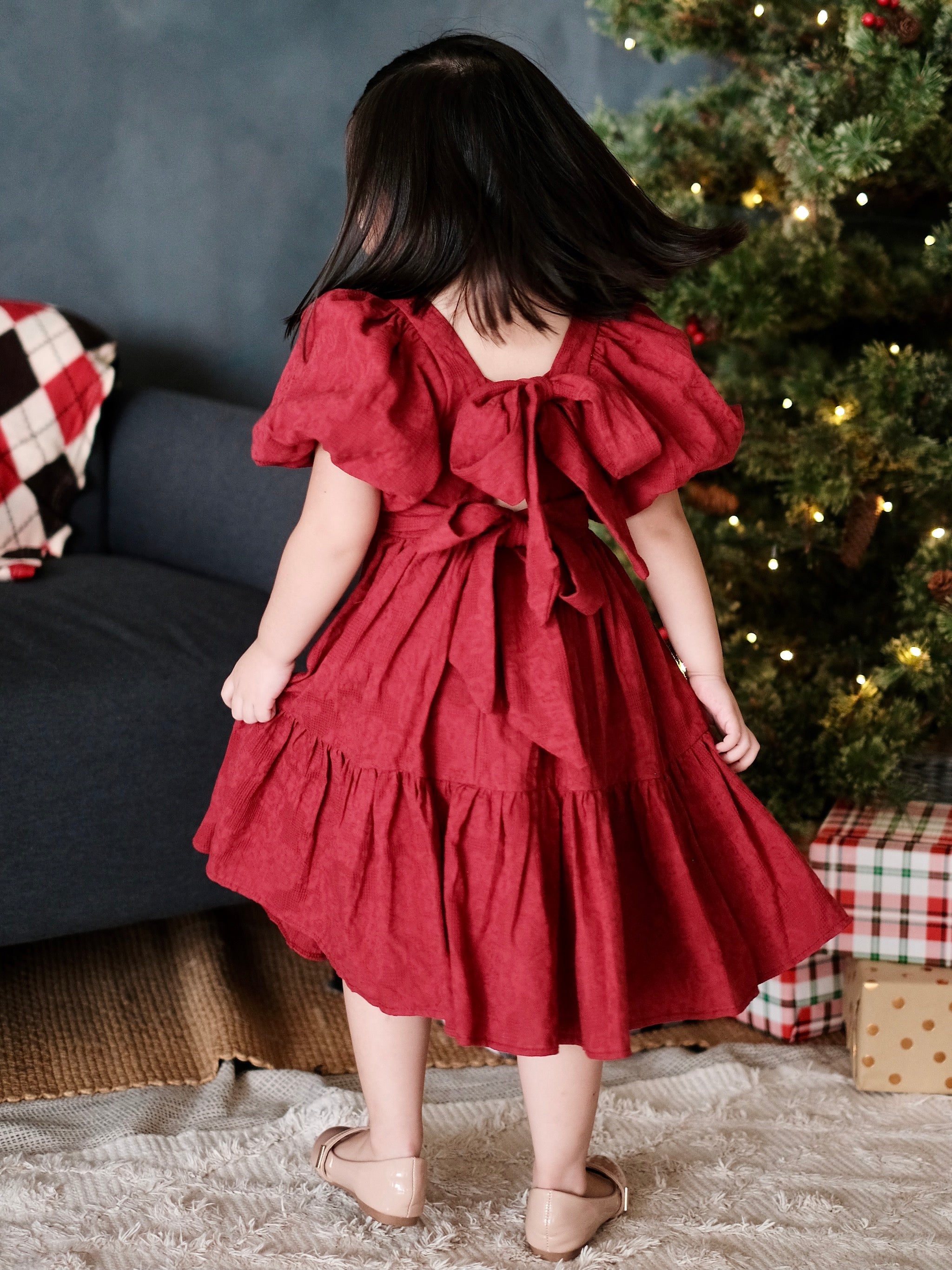 A frock inspired by the beloved Marguerite dress- Merida features square neckline, bubble sleeves, doll dress silhouette and double bow at the back- all made out of embroidered cotton.