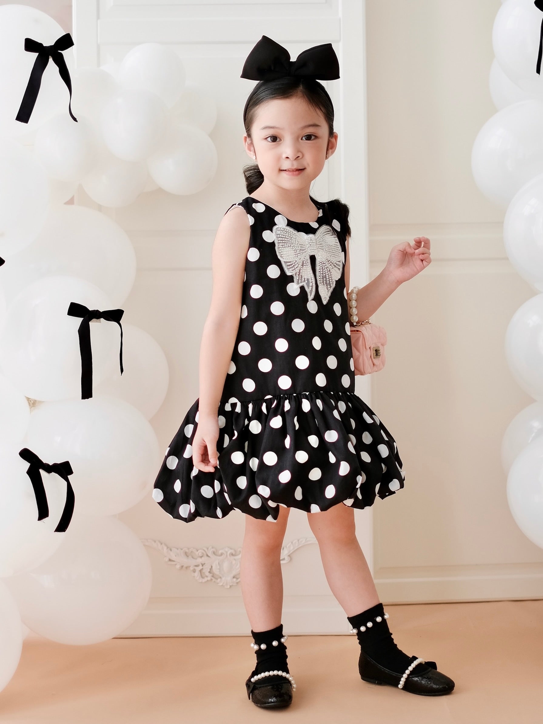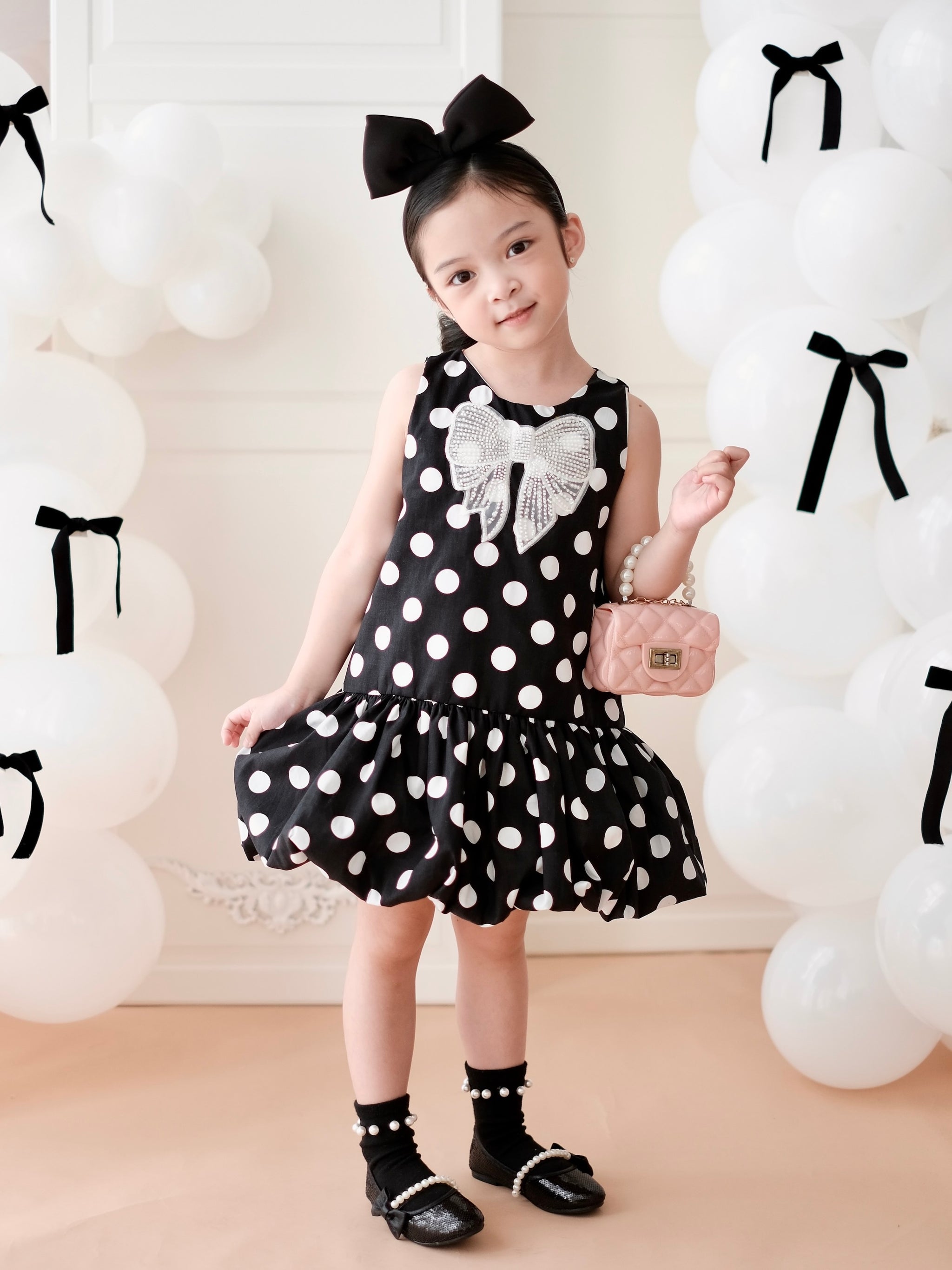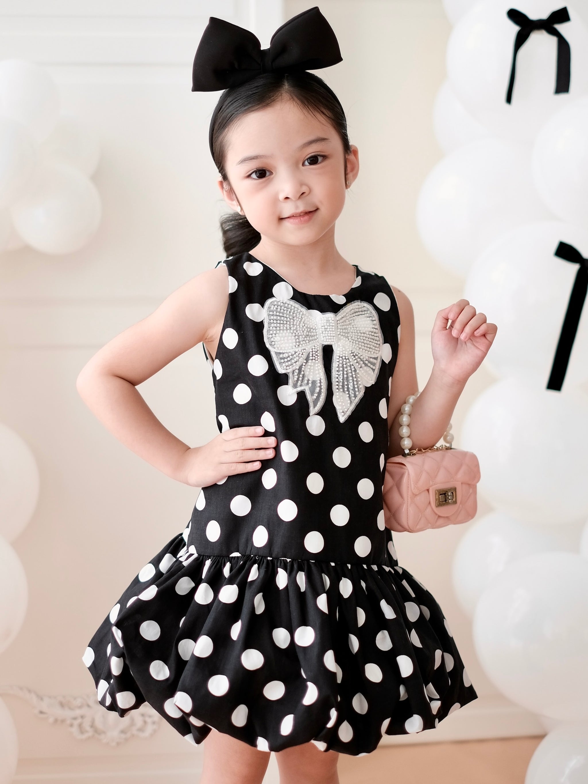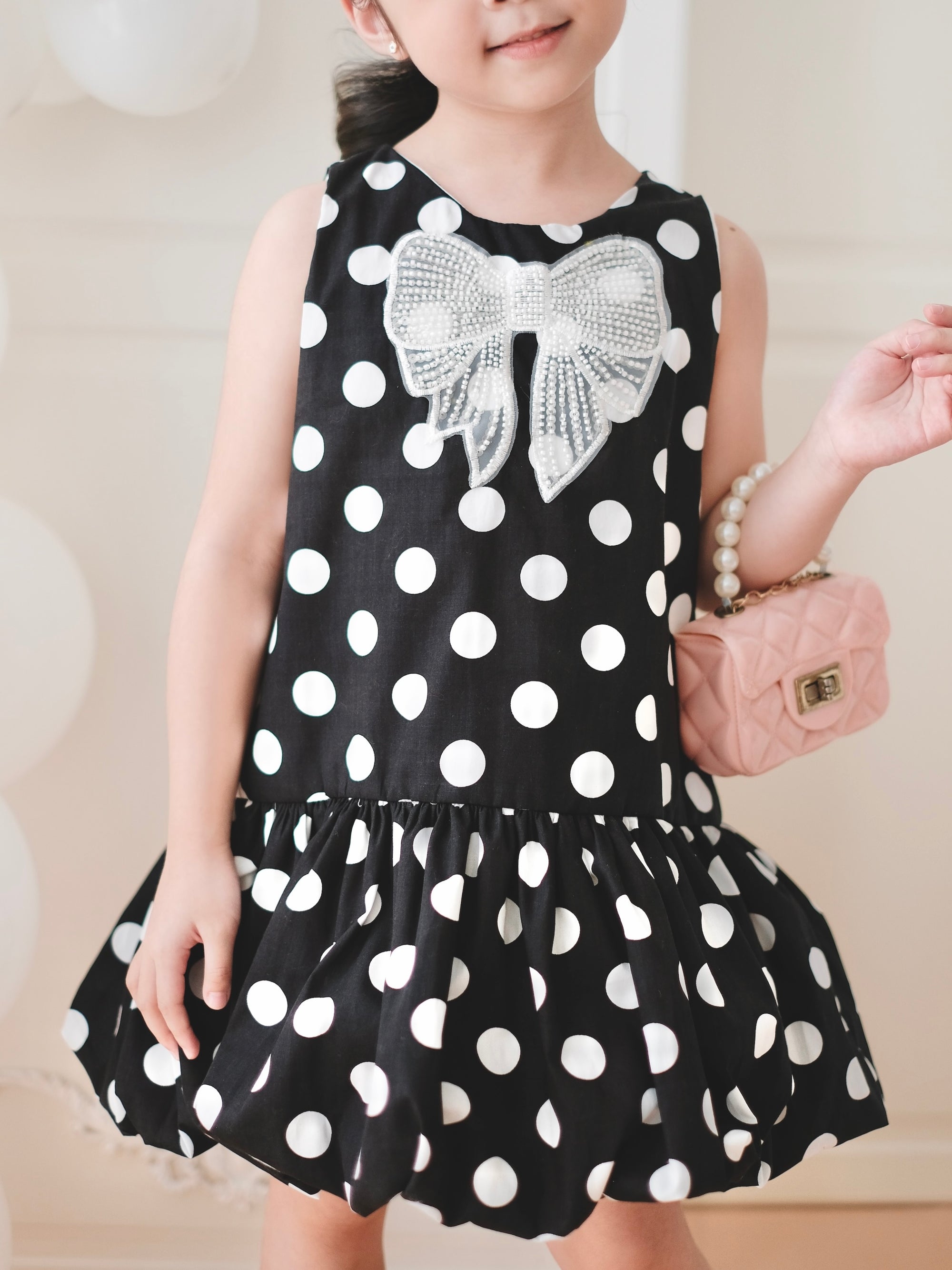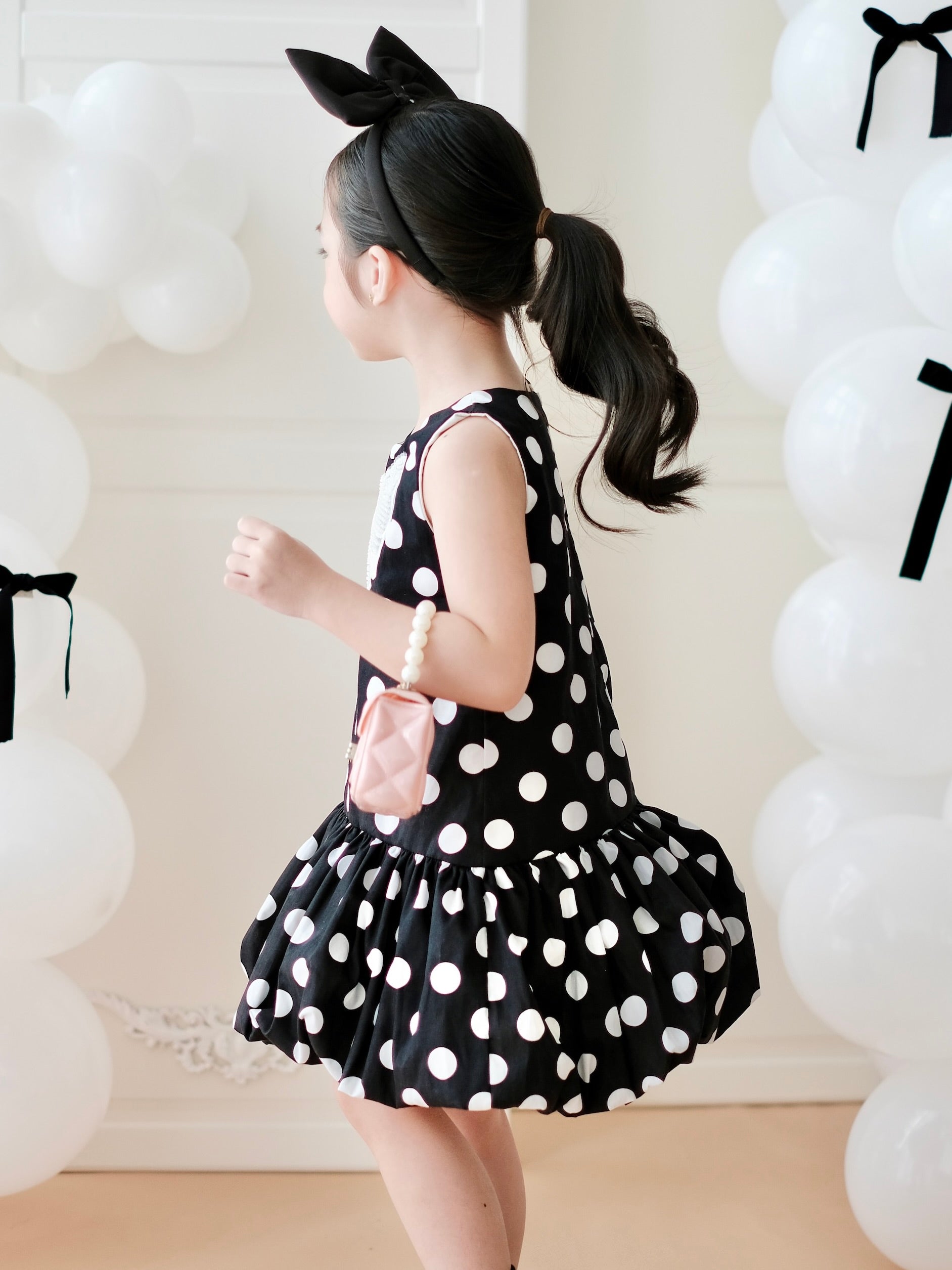 Twirl in timeless style with this charming polka dot bubble dress! Featuring classic white dots across a black background, this playful piece brings vintage-inspired fun to any occasion. The signature bubble silhouette creates a flattering, whimsical shape that's perfect for little fashionistas who love to make a statement. Soft, comfortable, and utterly adorable, a wardrobe essential that never goes out of style.